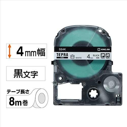 キングジム テプラPROテープ SS4K 白に黒文字 4mm SS4K