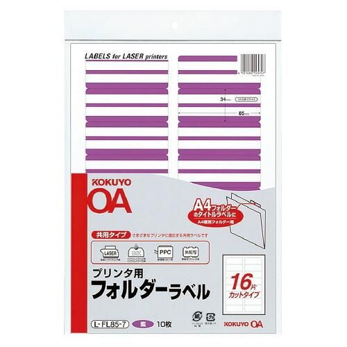コクヨ プリンタ用フォルダーラベル A4個別フォルダー用 10枚入 紫 L−FL85−7