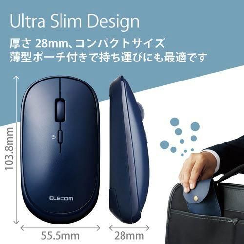 エレコム Bluetoothマウス 無線4ボタン 薄型 ポーチ付 ブルー M-TM10BBBU