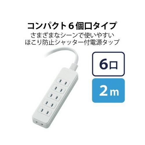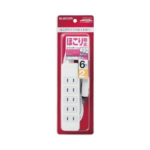 エレコム ほこりシャッター付き電源タップ 6個口/2m/ホワイト T-ST02-22620WH