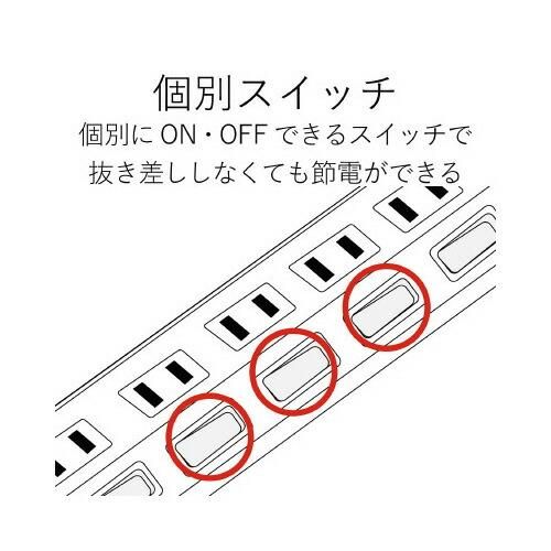 エレコム 個別スイッチ付 雷ガード 電源タップ 6個口 2.5m ホワイト T−K6A−2625WH