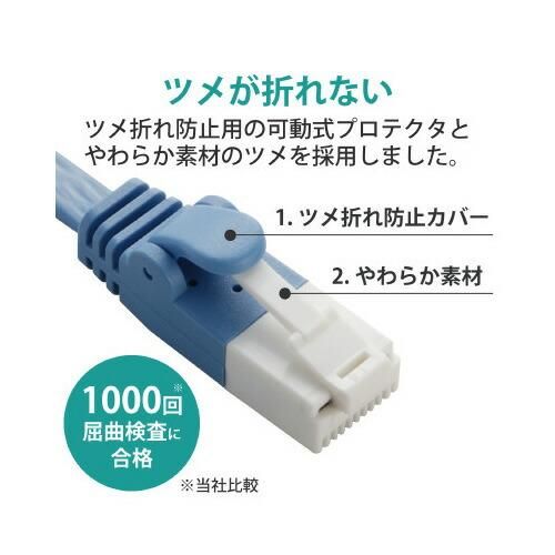 エレコム ツメ折れ防止フラットLANケーブル CAT6/爪折れ防止/5m/ブルー LD−GFT/BU50