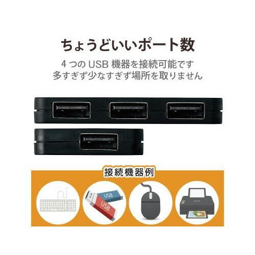 エレコム エレコム USB2.0ハブ バスパワー 4ポート ブラック U2H−YKN4BBK