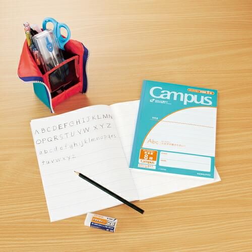 コクヨ キャンパスノート(用途別) セミB5 英習罫8段 まん中が広い罫 30枚 青緑 ノ−30FW8