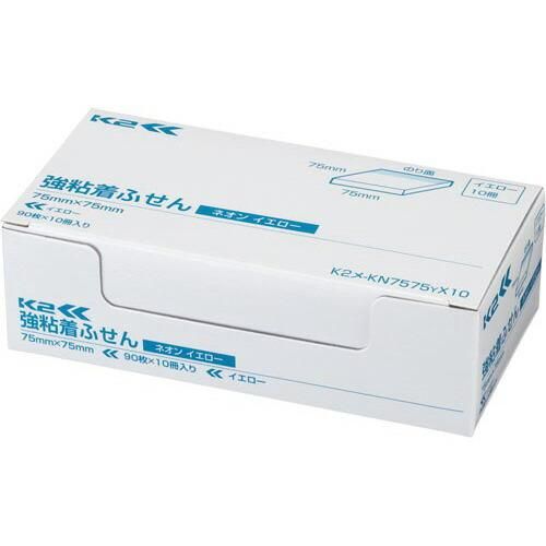 コクヨ 強粘着ふせんK2 75×75 10冊 正方形タイプ(ネオン・イエロー) K2メ−KN7575YX10