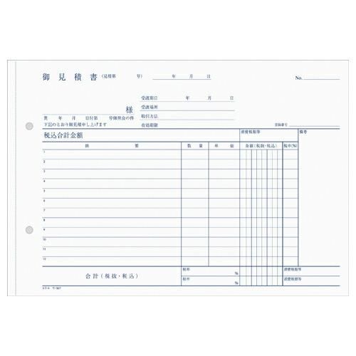コクヨ NC複写簿 見積書 B5横 2穴80mmピッチ12行 40組 ウ−307