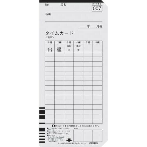 セイコーソリューションズ セイコー用タイムカード SY 全締日対応 両面 6欄 SYカ−ド