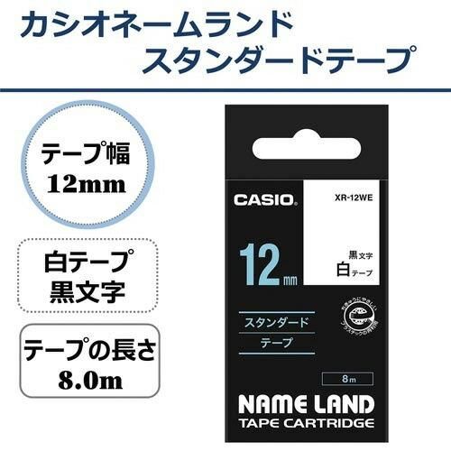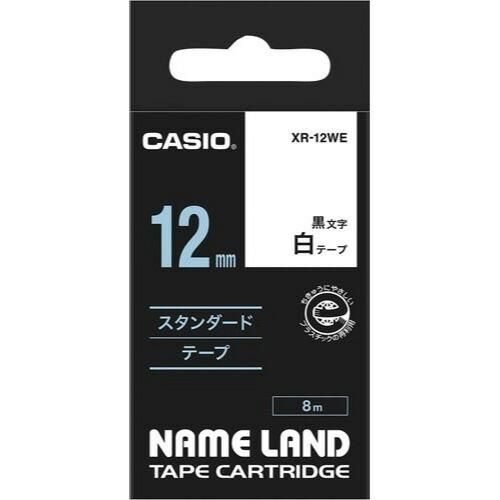 カシオ計算機 ネームランド テープカートリッジ スタンダードテープ 白に黒文字12mm幅 XR-12WE