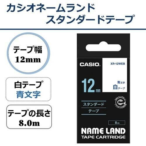 カシオ計算機 ネームランド テープカートリッジ スタンダードテープ 白に青文字12mm幅 XR-12WEB