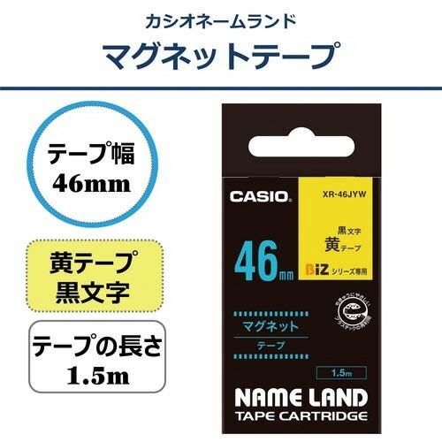 カシオ計算機 ネームランド テープカートリッジ マグネットテープ 黄に黒文字 46mm幅 XR-46JYW