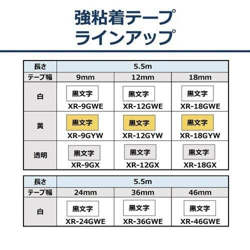 カシオ計算機 ネームランド テープカートリッジ 強粘着テープ 透明に黒文字18mm幅 XR−18GX