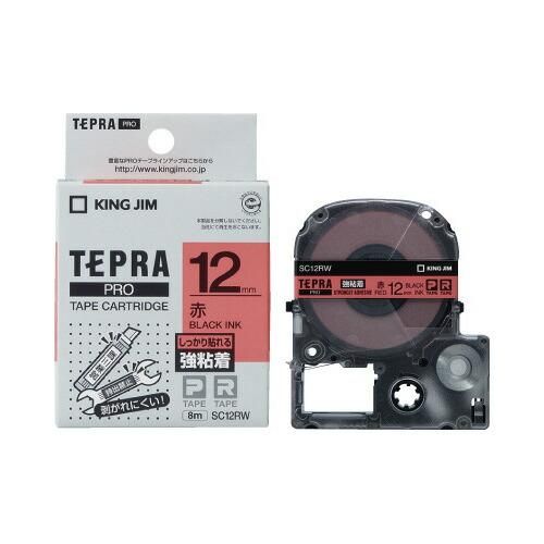 キングジム テプラPROテープカートリッジ 強粘着ラベル 赤に黒文字12mm幅×8m SC12RW