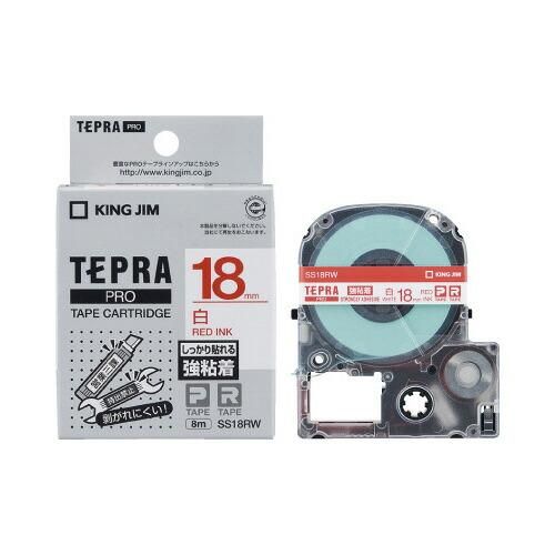 キングジム テプラPROテープカートリッジ 強粘着ラベル 白に赤文字18mm幅×8m SS18RW