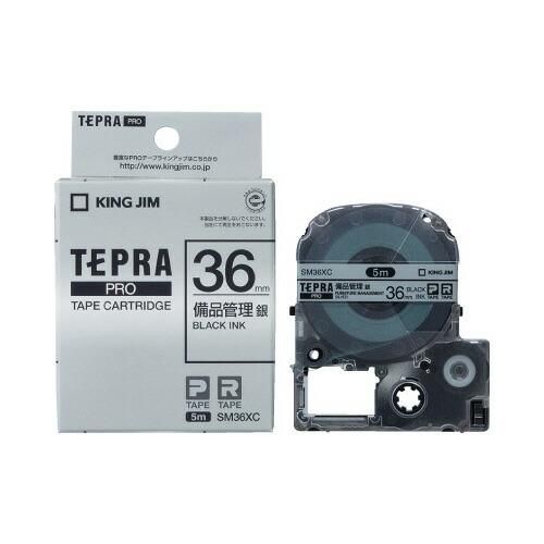 キングジム テプラPROテープカートリッジ 備品管理ラベル 銀に黒文字 36mm幅 SM36XC