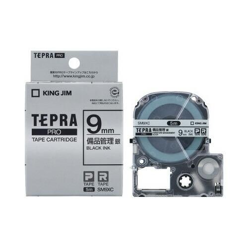 キングジム テプラPROテープカートリッジ 備品管理ラベル 銀に黒文字9mm幅×5m SM9XC