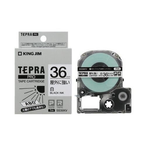 キングジム テプラPROテ−プ屋外に強い白/黒文字 36mm幅 白ラベル 黒文字 SS36KV