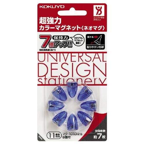 コクヨ 超強力カラーマグネット<ネオマグ> ピンタイプ11mm 透明青 8個入 マク-1010NTB