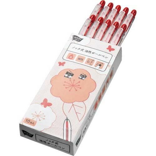 カウネット ノック式油性ボールペン 0.7mm インク色:赤 10本入 4208−3498