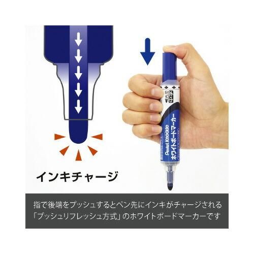ぺんてる ホワイトボード用マーカー ノックル 青インキ(丸芯・中字筆記線幅2.1ミリ) EMWLM−C