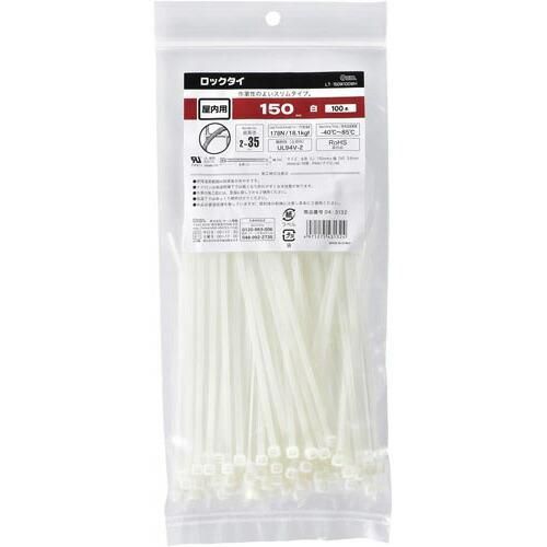 オーム電機 ロックタイ 150mm 白 100本 100本 04-3132