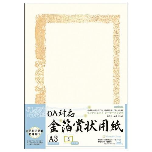 オキナ OA対応金箔賞状用紙 タテ書き用(ヨコ型) 5枚入 A3 SGA3
