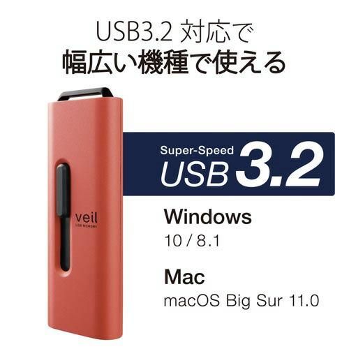 エレコム USBメモリスライド式 128GB レッド MF-SLU3128GRD