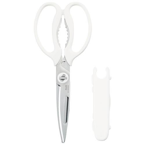 はさみ1本に多彩な機能をプラス●全長:200mm●刃渡り[mm]:80●質量[g]:105●食洗器対応/非対応:対応●色:マッシュルームホワイト●耐熱温度[℃]:110●カバー:有●特長:ベルヌーイカーブ刃、あんしん分解設計、電解研磨加工、ピーラー機能、栓抜き機能、フタ回し機能、補助ナイフ機能(先端部分)、刃先端が浮きテーブルを汚しません●付属品:キャップ●材質:刃・カシメピン=ステンレス鋼、グリップ=TPE+PP、がたつき防止リング=POM、キャップ=PP●原産国:中国