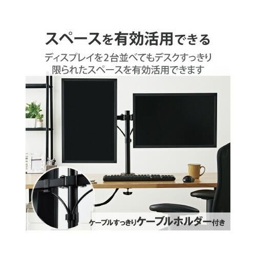 ●セット内容/クランプ×1、ポール×1、アーム×1、VESAマウント×2、ケーブルホルダー×1、グロメット用上プレート×1、グロメット用下プレート×1、キャップ×1、クッションパッド×5、皿ネジ×3、VESAマウント固定ボルト×2、VESAマウント固定ネジ×2