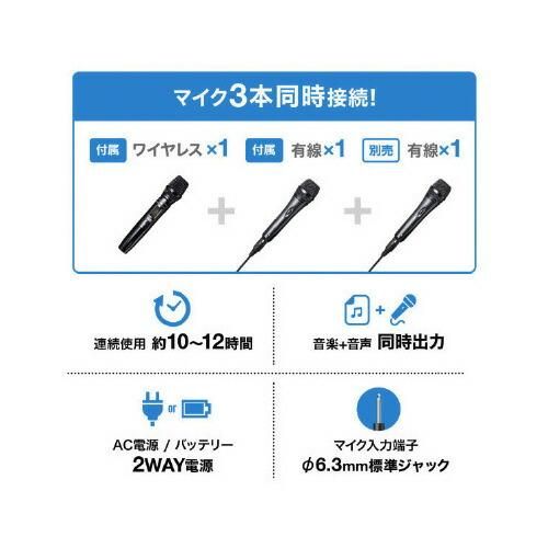 ●付属品/ワイヤレスマイク×1、有線マイク×1、マイクケーブル(約4m)×1、収納用バッグ、電源ケーブル×1、3.5mmケーブル×1、ショルダーベルト、マイクスワップリング