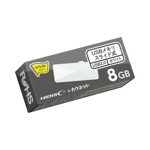 カウネット USBメモリ スライド式 8GB ホワイト 7392−3152