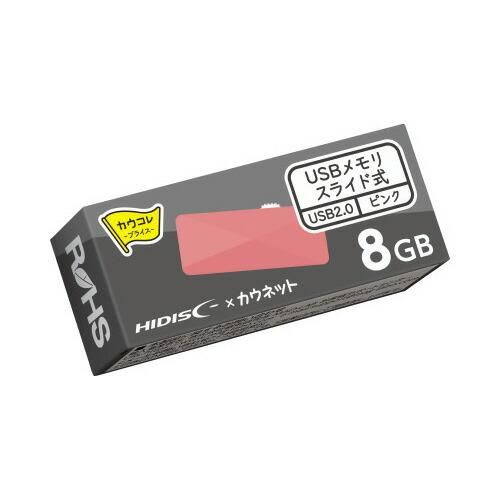 カウネット USBメモリ スライド式 8GB ピンク 7392−3176