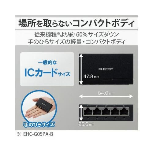 エレコム スイッチングハブ 金属筐体 5ポート EHC−G05MA−B